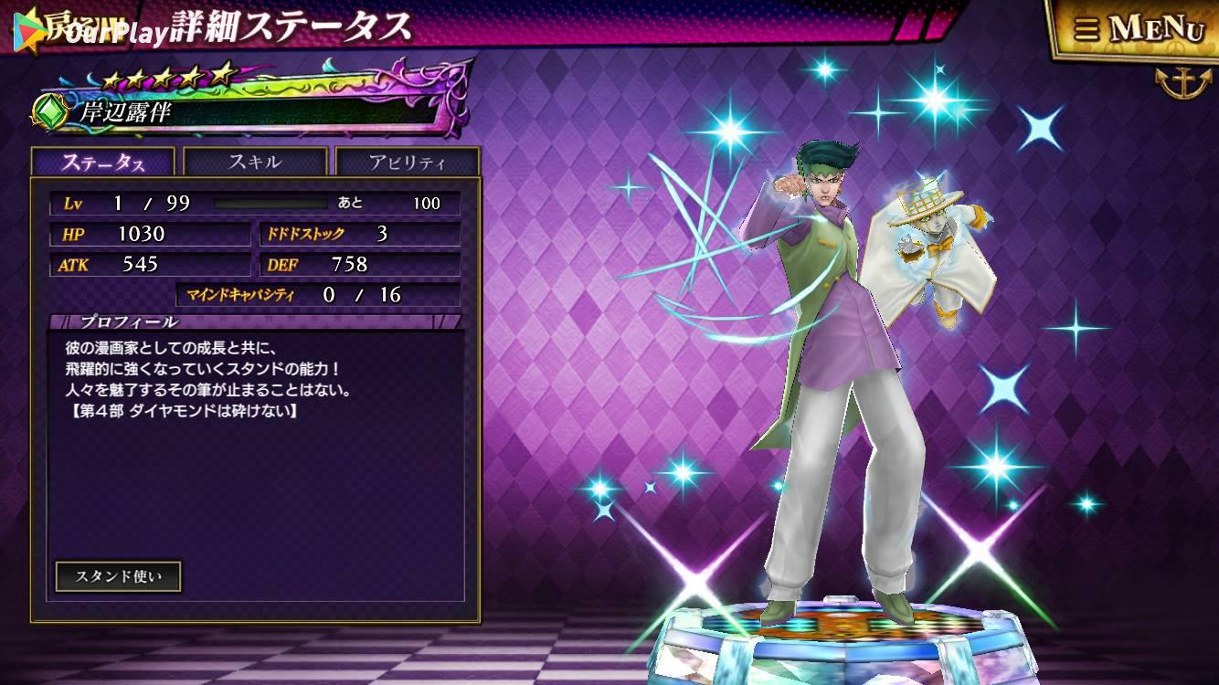 游戏介绍:《JOJO的奇妙冒险钻石纪录(ジョジョの奇妙な冒険 ダイヤモンドレコーズ)》官方中文版是由万代南梦宫官方推出的一款以JOJO为故事被动的3D动作RPG手游,你将与JOJO一起参与各种奇妙的冒险!