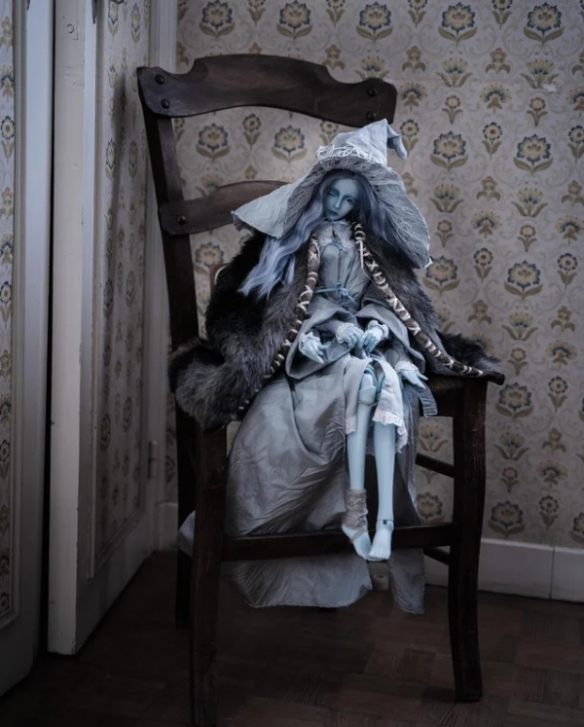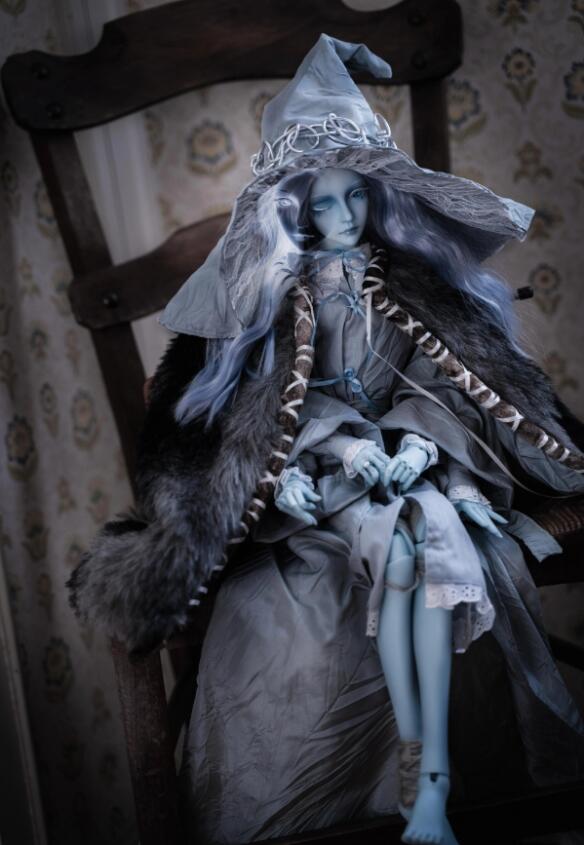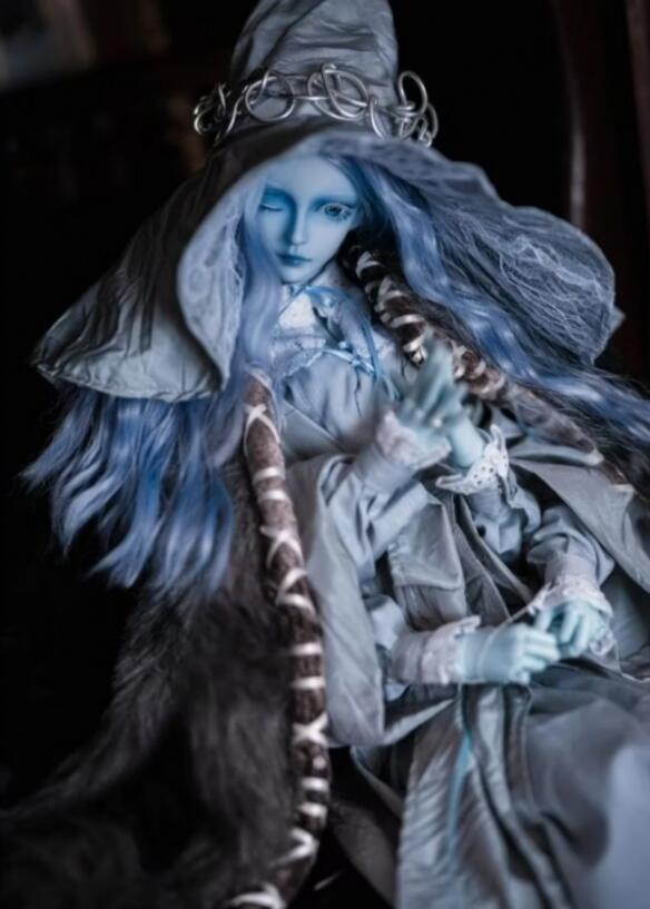 这是一个球形关节娃娃,材料为树脂,内部是空心的,并用松紧带固定,在头部、肩部、肘部、腕部、臀部、膝盖、脚踝处等有可活动关节,让娃娃可以像真人一样移动。