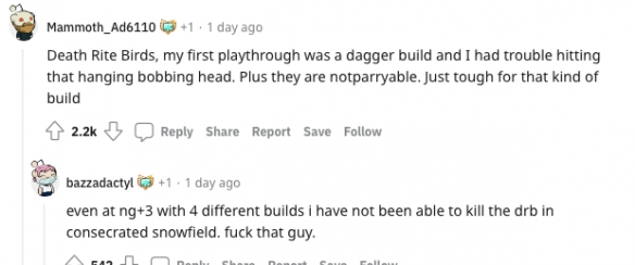 很多网友也表示相较于一些大型单个BOSS,他们更讨厌一些常规敌人,甚至是让很多玩家崩溃的女武神都没在该帖中被提及。