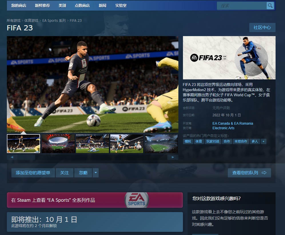 同时,在8月22日之前预购 EA SPORTS™ FIFA 23 终极版即可获得 FIFA 23 Ultimate Team™ 中的 FIFA World Cup™ FUT 英雄球员物品、4,600 FIFA Points 和其他奖励。
