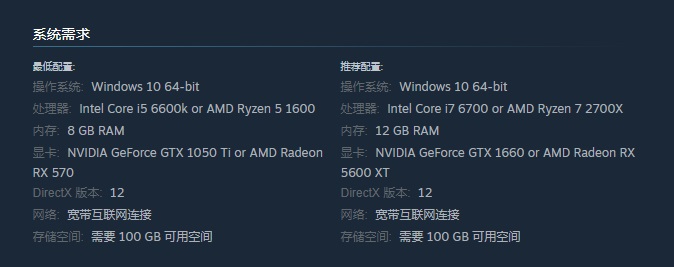 处理器: Intel Core i7 6700 or AMD Ryzen 7 2700X