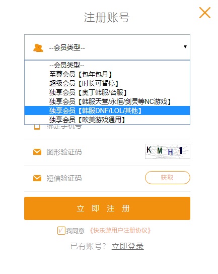1、打开《加速器特权网》官网(https://www.klyou.cn/)注册会员,选择“独享会员【韩服DNF/LOL/其他】”;