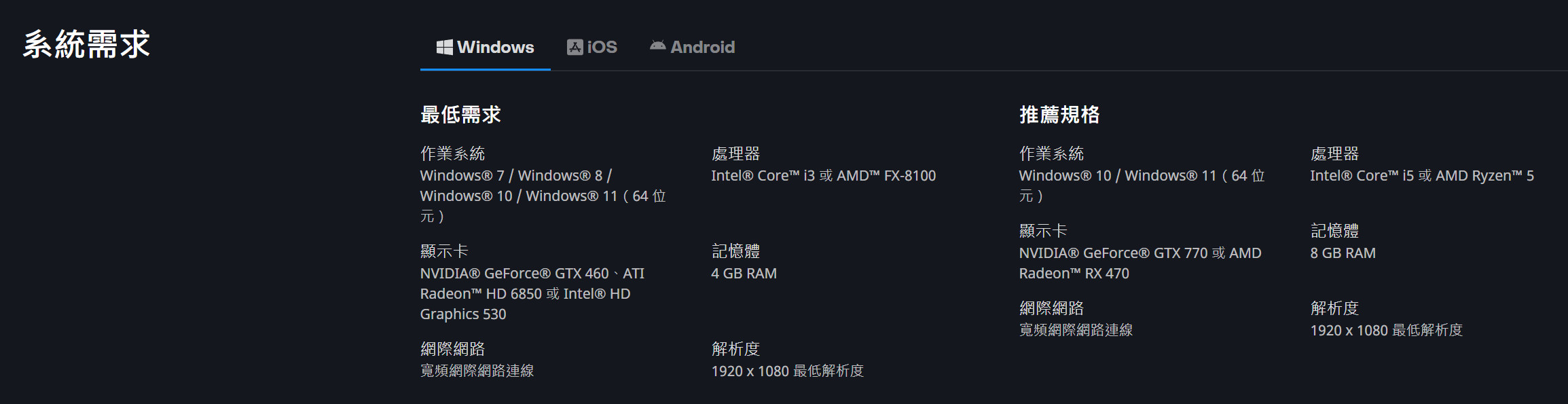 显卡:GTX 460或HD 6850或英特尔HD Graphics 530