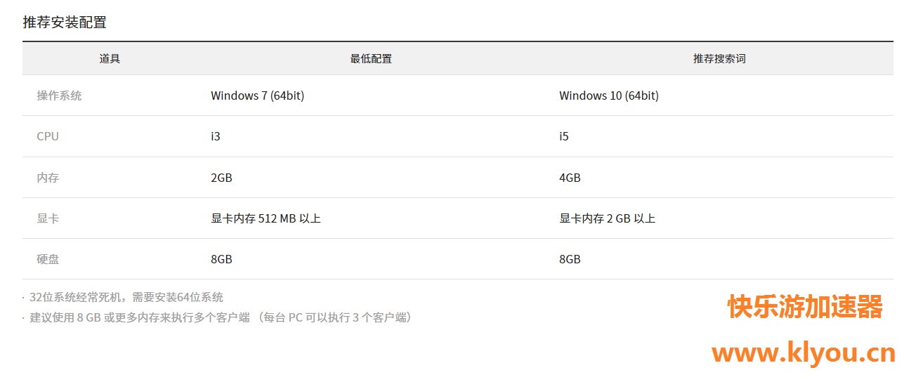 操作系统:最低配置--Windows 7 (64bit) 推荐配置--Windows 10 (64bit)