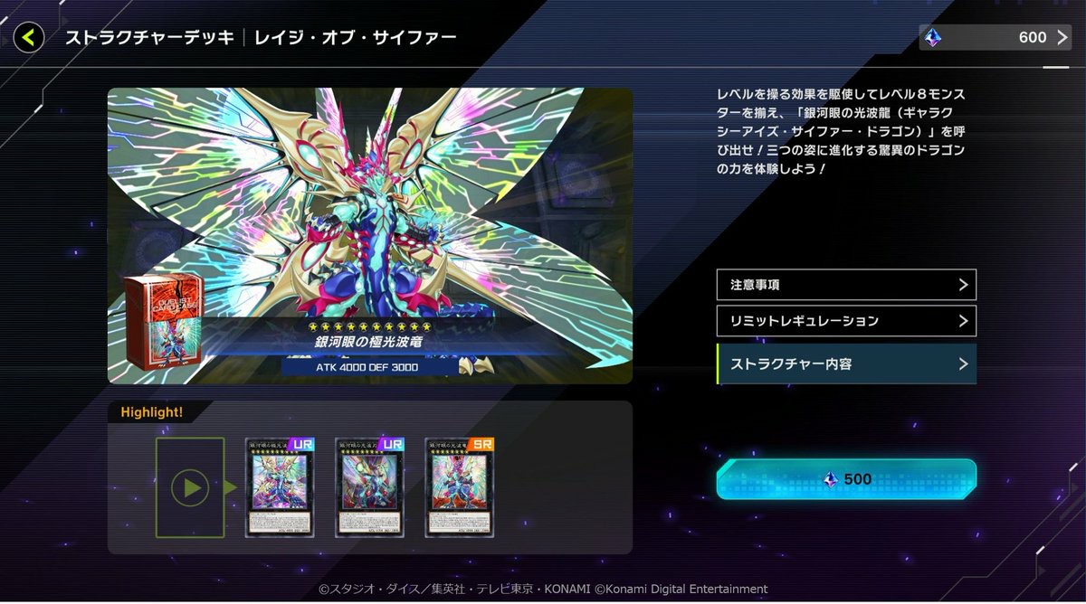 此外,为了配合新模式上线,一套新预组卡组“银河眼光波龙”也同步上线游戏,售价500宝石。该预组是超量主题的预组,可以参与新模式对战。