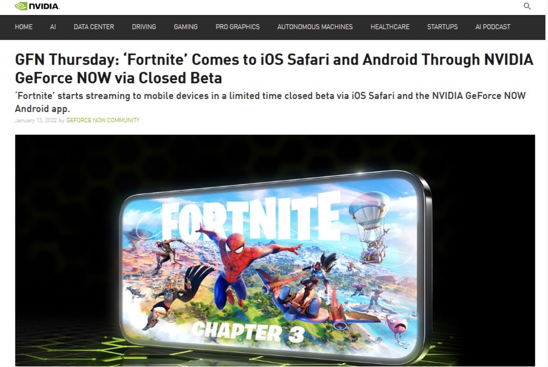 英伟达宣布,下周《堡垒之夜》将在GeForce NOW云游戏平台上进行限时封闭测试,iOS端将通过Safari浏览器进入游戏,安卓端通过GeForce NOW APP运行。本次测试对所有GeForce NOW会员开放,测试将会分批进行,目前已经开放注册。