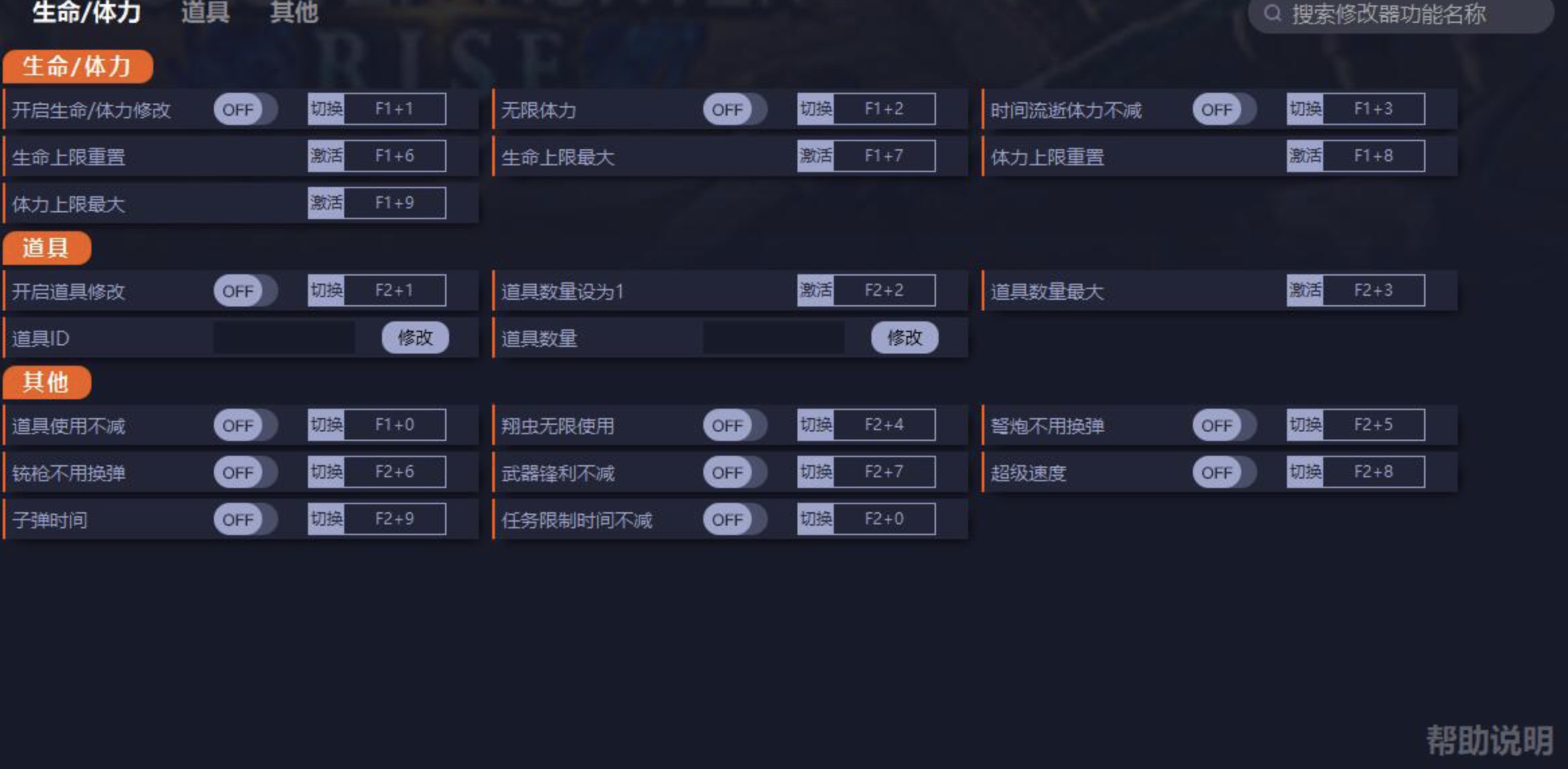 3.开启修改器各主初始项再使用各子修改项[无主初始项则不用开启][主初始项:如开启...修改]。