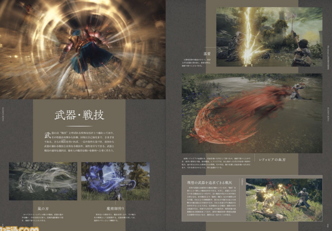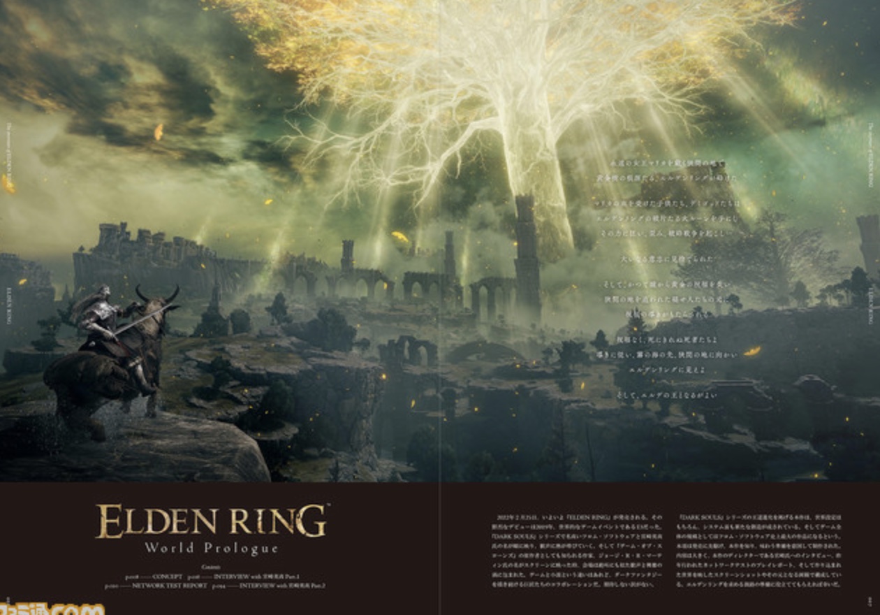 由角川发行的《艾尔登法环》特典书《The Overture of ELDEN RING》公开了内容预览图,特典书中介绍了《艾尔登法环》的主要特色,将介绍游戏里充满危险的广阔世界,神秘的舞台设置,以及精心制作的具有众多视觉效果的游戏系统。