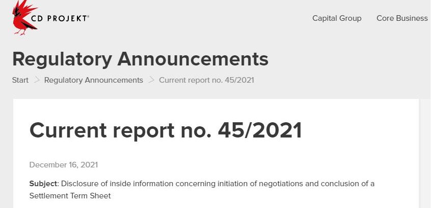 CD Projekt表示,他们与原告方在12月15日最终达成一致、签署和解协议,原告方将放弃所有针对CDP公司及其管理委员会的指控,而CDP将向他们支付185万美元和解费。