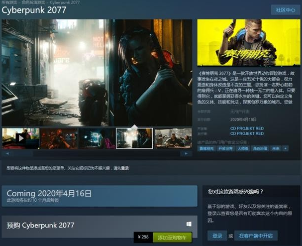 《赛博朋克2077》最初公布的发售时间——2020年4月16日