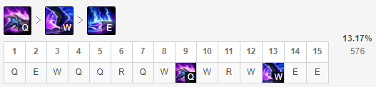 前期对线保证Q技能来稳定补刀,等级到达三级可以W技能先手枯萎敌人,减速并降低伤害,随后贴脸QE配合普攻来持续输出,打一套消耗后重新拉开距离,六级有大招击杀贴脸击杀能力更强,中期装备具备后疯狂叠Q技能伤害,后期团战进场,贴脸敌方C位英雄,枯萎加上Q技能伤害快速将其击杀。