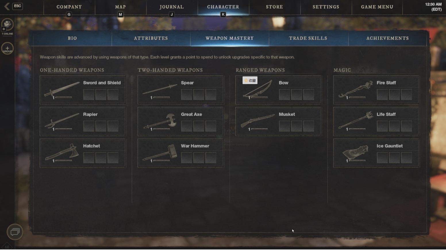 当冲突和杀戮太多时,这样一种玩游戏的方式也别有生趣。而在《新世界》中,有位叫Liventilde的玩家在Reddit上分享了一位达到60级但没有杀死任何一名敌人的玩家,他附上了这名玩家的技能水平截图,所有武器精通都为1。这证明他从未在《新世界》中杀死任何人或物,这是一个相当不容易的成就。另一方面,也表现了《新世界》鼓励玩家随心所欲的玩,深入研究他们喜欢的MMORPG的每一个方面。
