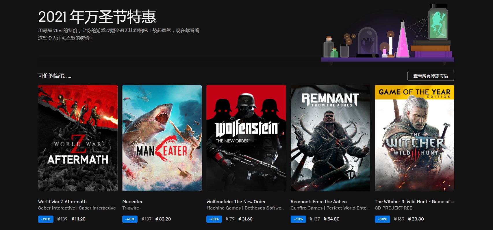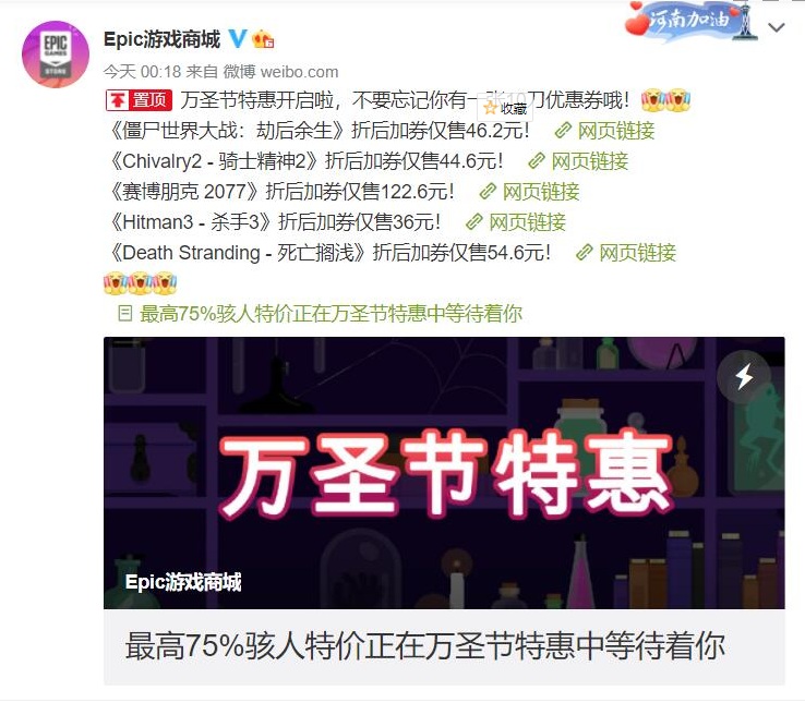 Epic特价游戏:https://www.epicgames.com/store/zh-CN/sales-and-specials/halloween-sale