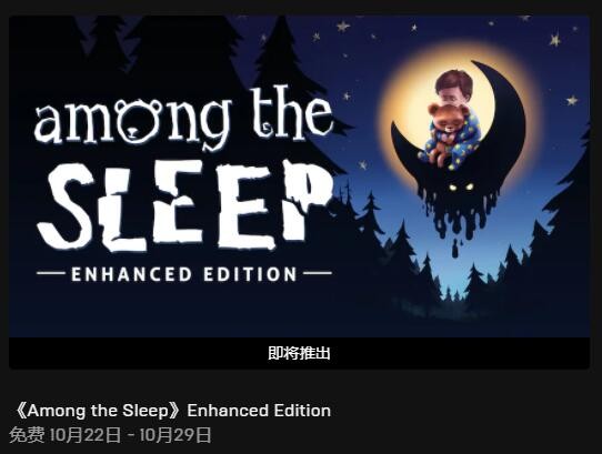 目前公布的下周免费领取游戏:《睡梦之中:增强版》(Among the Sleep Enhanced Edition),免费领取时间为北京时间10月21日23点至10月28日23点。