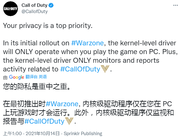 内核模式反作弊,此前已经在《无畏契约(Valorant)》、《毁灭战士永恒(Doom Eternal)》等游戏中所见,并经常引起争议,因为它们将始终处于开启状态。本质上,这意味着反作弊程序始终在关注你正在做什么。 动视在一个专门的常见问题解答中指出,Ricochet 只会在《使命召唤:战区》运行时运行,驱动程序并不总是在线。该软件启动《使命召唤:战区》时打开,并在关闭游戏时关闭。此外,内核级驱动程序仅监控和报告与《使命召唤》相关的活动。