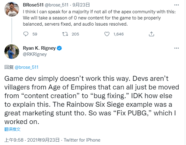 当然,这引出了它在《彩虹六号:围攻》等游戏中如何运作的问题, Ryan Rigney 在他的回应中也提到了这一点,称其为“伟大的营销噱头”。Rigney 还解释说,类似的事情发生在PUBG 上,大约三年前,一场名为“Fix PUBG”的错误修复活动发生了。Rigney 对此进行了研究,突出了他在这方面的专业知识,并证明了他的观点,即这些活动并不是真正有效的。