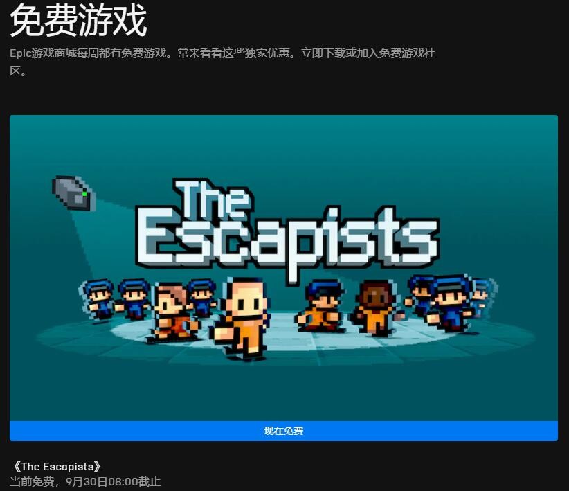 Epic游戏商城本周免费游戏领取现已更新,为《脱逃者》(The Escapists),小伙伴可以使用《加速器特权网》进行免费领取,免费领取时间为北京时间9月23日23点至9月30日8点。