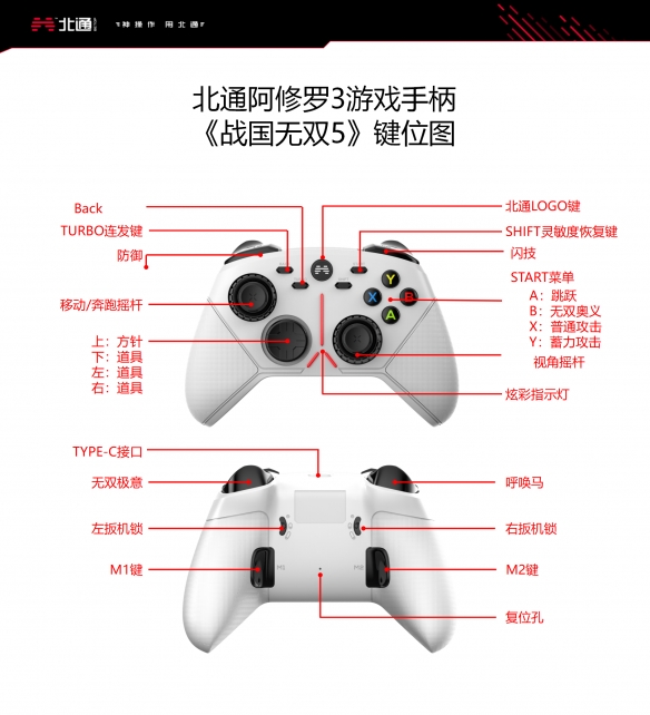 战国无双5手柄怎么用?很多小伙伴可能还不清楚游戏中怎么用手柄吧,今天小编给大家带来战国无双5北通阿修罗3手柄按键一览,快来看一下吧。