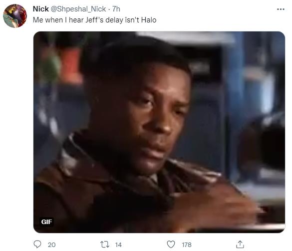 首先是XboxEra网站创始人以及XboxEra博客主持人Shpeshal Nick发推表示:“当我听到杰夫所说的跳票不是光环时”并配图为放松的动图。