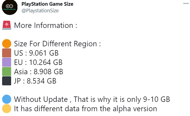 而地区不同游戏B测的容量其实也不同,美服版本大小为9.061GB,欧服版本大小为10.264GB,亚服版本大小为8.908GB,日服版本大小为8.534GB,同时,PlayStation Game Size还表示,由于B测版不会更新,所以容量才只有9-10GB,而且B测版本和A测版本有着完全不一样的数据。
