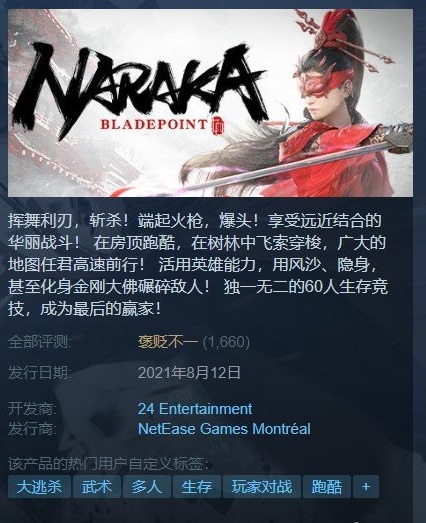 8月12号,国产武侠大逃杀游戏《永劫无间》已在steam公测,虽然首日热度冲上steam在线人数前十名,但目前的评价为褒贬不一,来看下网友的评论。