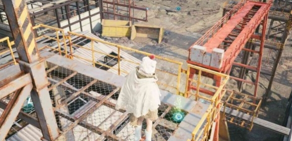 爬上金属塔之后将手里剑扔到上面的塔吊上,掉下连接桥,走过连接桥之后击败敌人,爬上另一侧的金属塔,魔晶石就在塔顶。