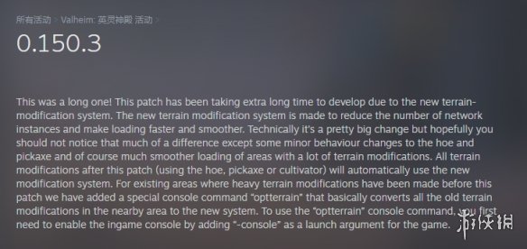 Iron Gate Studio工作室近日发布了开放世界生存建造游戏《英灵神殿》0.150.3版本更新,地形修改系统得到了调整,性能也得到了提升。而且锄头得到加强,现在抬升地面所需的石头数量减少到原先的一半。