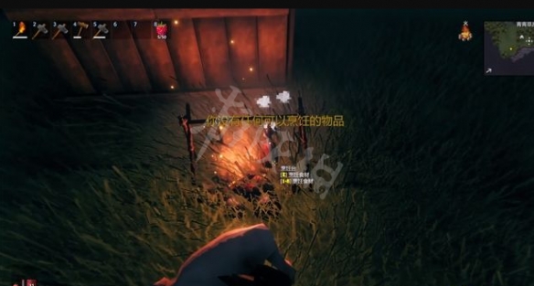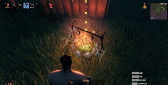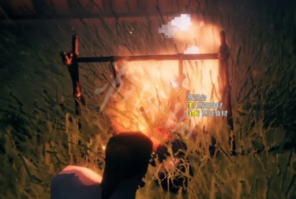 然后按E即可将生肉放在架上烹饪,也可以将其他要烤的食物放在快捷键上,按快捷键进行烹饪。