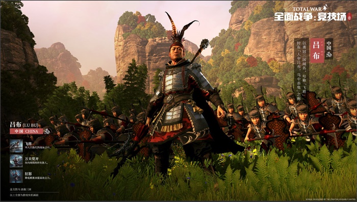 《全面战争:竞技场》新版本“三国”中,中国阵营震撼登场将是令人耳目一新的游戏体验。在辽阔宏大的古战场上,吕布这位在演义文学和影视作品描写下闻名于东亚地区的三国第一猛将,将在你的选用之下,率领精锐部队遭遇西方世界的军事力量,运用吕布正面撕裂并摧毁敌方阵线的凶悍实力,为扬名立万而战吧!
