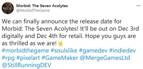 “我们终于可以宣布《病态:七侍者》的发售时间了!数字版12月3日解锁,12月4日实体版发售,希望大伙能和我们一样激动!”