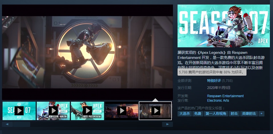 由EA发行的“大逃杀”类型免费FPS游戏《Apex英雄(Apex Legends)》现已正式登陆Steam,目前游戏在Steam好评率为88%,支持中文音频,但是锁国区。喜欢的的小伙伴赶快加入《加速器特权网》开启《Apex英雄》的Steam之旅吧!