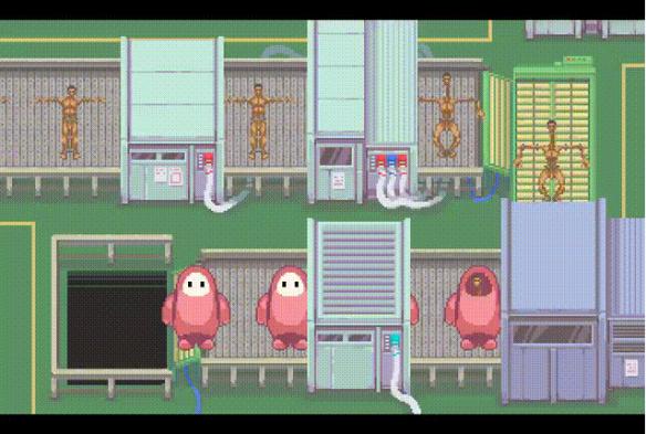 原来不是糖豆人真的身高一米八,而是一米八的类人生物被硬生生扭曲成了这样一个小可爱。与这张内部构造图一起登场的,是糖豆人官方一句“这是你们自找的”…围观群众当场受到了正无穷点精神伤害,直接开始怀疑自己是不是走错了片场。或者脑补出了看似可爱的糖豆人世界背后黑暗绝望的世界观。还有网友表示“我不要你觉得,我要我觉得”,当场掏出了一副理想中的设计图来抵抗精神污染。甚至还有人把将正常人类批量改造成糖豆人的过程都给用动图表示的一清二楚。