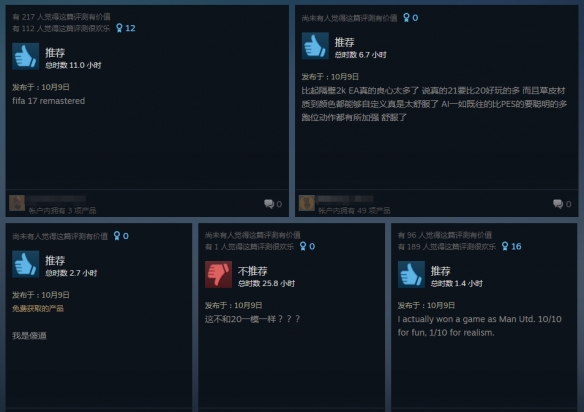 由Electronic Arts制作的足球竞技游戏《FIFA 21》今日(10月9日)正式发售(锁国区),目前游戏在Steam整体评价已经由“特别好评”跌至“多半好评”,玩家们对《FIFA 21》也是不吝“溢美”之词,字里行间充满了对EA的“赞美”。