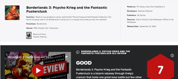 总评:除了光怪陆离的星球和出彩的BOSS战,“狂人克里格之脑内高潮”是对《无主之地》中这个存在感不强的角色一次不太精彩的探索。像以往的《无主之地》扩展内容一样,它给你带来了很多欢乐,各种奇特的怪物以及丰厚的战利品。但是这款DLC缺乏创新,没什么新意,还不足以让你重回《无主之地3》。