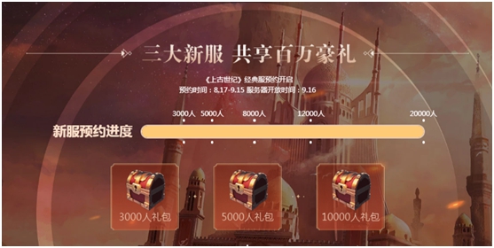 在经典服上线前一个月,官方就开启了新服预约活动,8月17日至9月15日在新服预约页面进行预约就能领取预约奖励,预约人数达到一定的数值还能获得相应的预约礼包。目前,所有的预约礼包均已解锁,9月16日经典服上线后,所有预约了新服的玩家均可到预约页面领取所有的预约奖励。