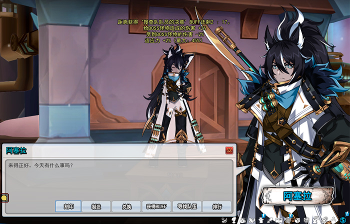 集结地除了公告栏、邮箱等基本设施以外,还有NPC“阿瑟拉”来处理日常事务,刻印、制造、排行等等多种功能所在,有需要的小伙伴们,就可以来找他处理啦!