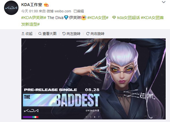 《英雄联盟》KDA官方公布了KDA女团阿狸新造型,定位是女王(The Queen)。8月25日,官方又公布了KDA女团伊芙琳的新造型,定位是天后(The Diva)。从图中可以看到,伊芙琳的眼神和气质确实很有天后范儿。