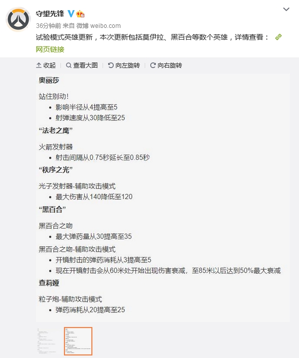 8月25日,《守望先锋》公开试验模式英雄更新细节,本次更新包括莫伊拉、黑百合等数个英雄,以下为具体内容。