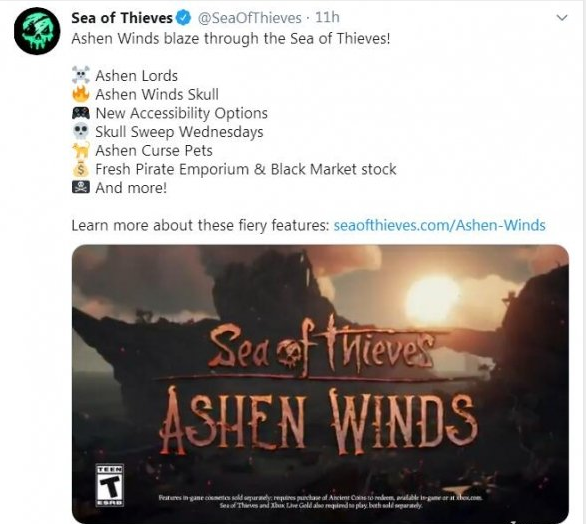 《盗贼之海》在最近这几个月里可以说是顺风顺水,人气一路高涨,而随着今天免费更新“Ashen Winds”的推出,想必又能激起海盗们扬帆起航的雄心。