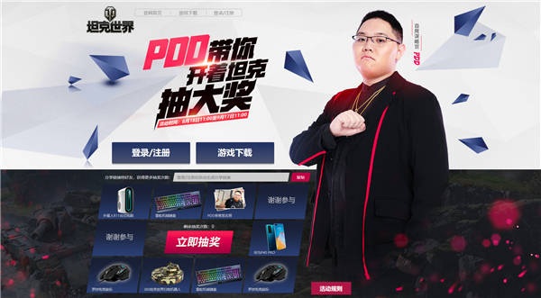 为庆祝公测顺利开启,官方特此邀请到人气主播PDD担任《坦克世界》首席谋略官,为玩家派发更多福利,指挥官们可访问活动专题页面进行抽奖,有机会赢取PDD亲笔签名照、360《坦克世界》定制版扫地机器人、外星人R11台式电脑等超强礼品。