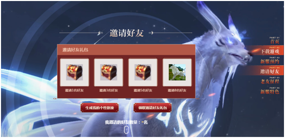 此次邀请好友预约还能额外获得得礼包,每邀请1名、3名、5名、8名好友可分别解锁对应的邀请礼包。邀请8名好友直接获得优雅之夜的怪盗阿米达狐狸坐骑,通体银白的九尾狐非常漂亮,基础移动速度高达11.5米每秒,最特别的是它还拥有一个魅惑技能,是控制敌人的好手段。赶紧邀请你的好友一起探索上古新篇,解锁狐狸坐骑。