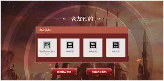 为了回馈老玩家对上古世纪多年的陪伴,凡是只在2020年8月2日前登陆过游戏,且账号最高等级角色高于30级的老友玩家,均可获得一份老友礼包,礼包含永久的平安回归晚礼服一套以及若干神秘奖励。
