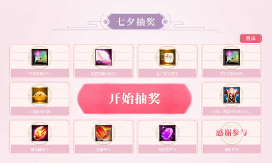 本次活动不仅为玩家们提供了畅叙幽情的平台,还特别为那些勇于表达爱意的小伙伴们,准备了丰厚的奖励,发布“告白情书”后即可获得1次抽奖机会,通过“奔现认证”的玩家还可额外获得2次抽奖机会,用于抽取【天河灵鹊】、【云霄羽翼】、【愿君共白首(永久)】等稀有奖励。
