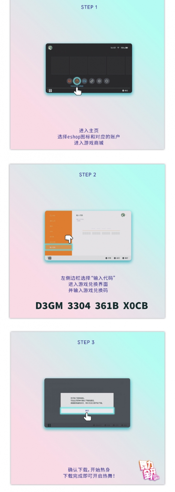 育碧官方今天(7月17日)宣布将于哔哩哔哩进行合作举行“BDF X 舞力全开线上挑战”活动,同时宣布《舞力全开》的试玩版已经登陆腾讯国行Nintendo Switch平台,国行NS玩家从7月17日起至8月6日,可通过兑换码 D3GM 3304 361B X0CB 在国行 Nintendo Switch eshop内下载体验版。快加入《加速器特权网》体验把!