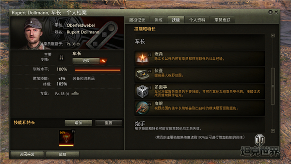 与坦克一样,乘员在经历战斗后,同样可以获得经验,而当坦克研发了所有配件后,还可以把坦克战斗后所应获得的经验,通过选项来给予乘员,加速坦克手们的培养和成长。