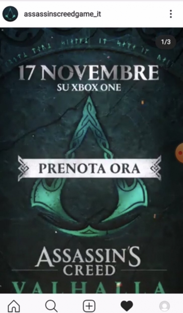 据报道,reddit用户发现《刺客信条:英灵殿》的意大利官方IG账号此前发布了一段视频,视频中显示《刺客信条:英灵殿》将会于11月17日正式发售,登陆PS4、Xbox One以及PC平台。目前该帖子已被删除。
