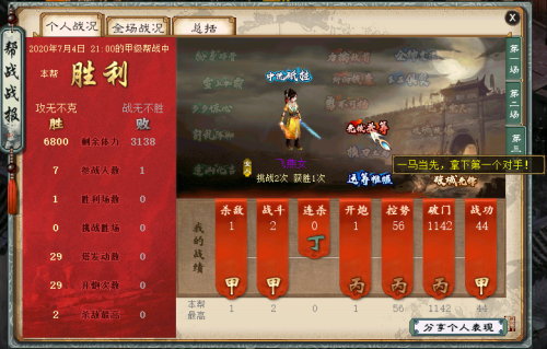 全场战况页面 帮众表现一览无余