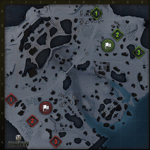 首先,重型坦克应该爬上西北边(D2和B4)进行战略部署,当比赛开始时,不要试图冲过道路前方那狭窄的悬崖(桥的西北方向),因为这里会轻易暴露你的位置,没有掩体可用的你将被首先淘汰。