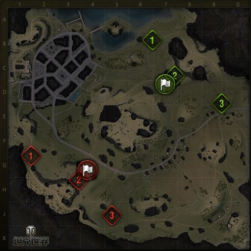 中心的小山丘是地图上最重要的战略位置,如果你有机动性优势,则可以火速前往并尝试获得此处的控制权。重型坦克可以绕过中央的丘陵,在附近不断游走,保卫战略要地。