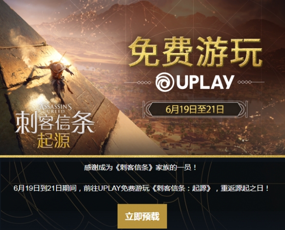 昨天育碧官方宣布旗下《刺客信条:起源》将于本周末开启免费试玩,时间从6月19日晚上9点持续至22日凌晨4点,目前游戏已开启预载。此外游戏本体还在育碧商城2折史低促销中,赶快加入《加速器特权网》超级会员一起畅玩吧!